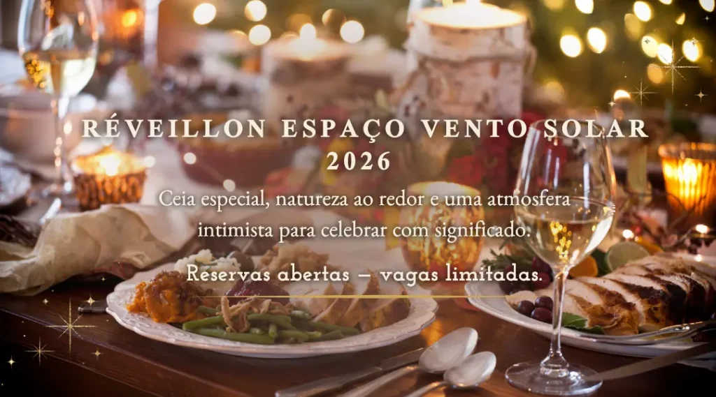 Nosso espaço é um refúgio especial, e para esse réveillon contamos com uma ceia especial, natureza ao redor e uma atmosfera intimista para celebrar com significado com sua família ou amigos. Entre em contato e faça sua reserva, vagas limitadas.