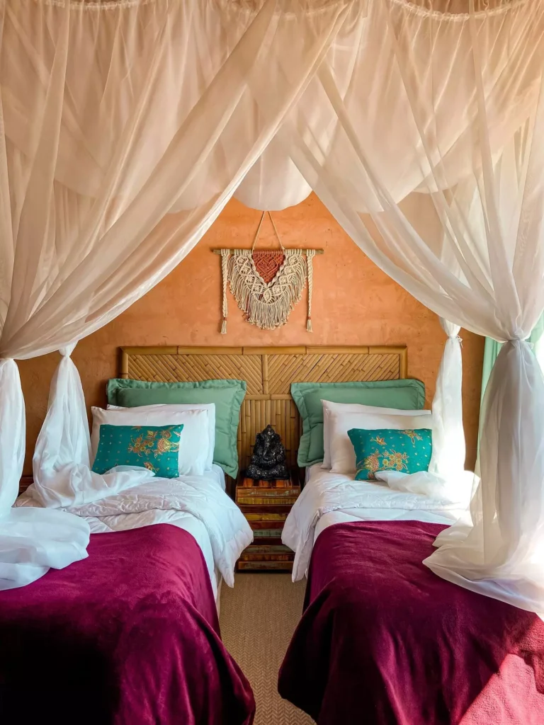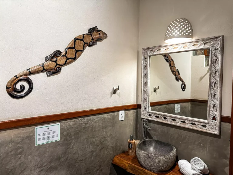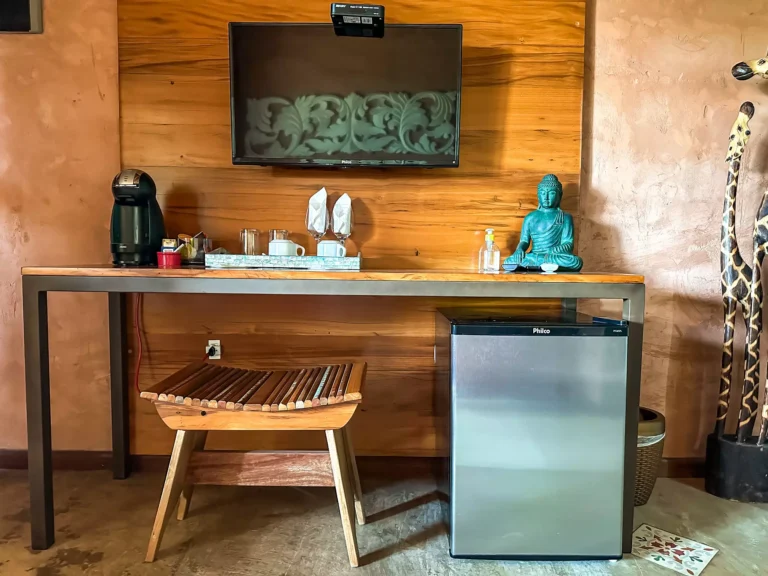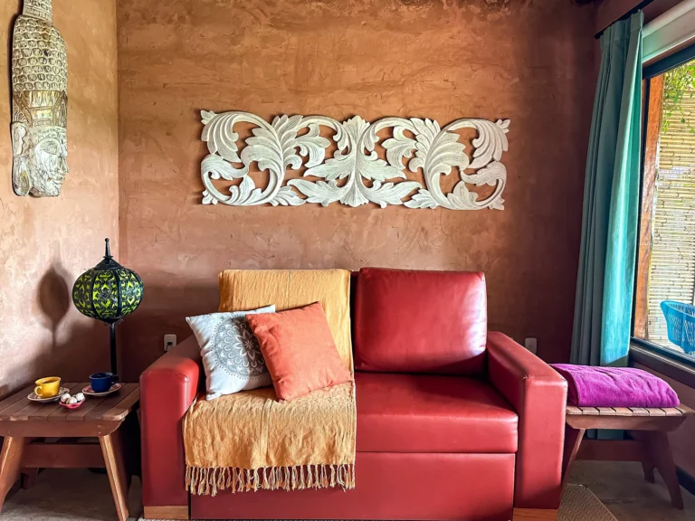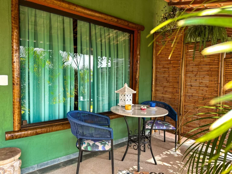 Ao entrar neste chalé, você será envolvido por uma atmosfera que combina o encanto da decoração exclusiva de Bali com o conforto moderno.